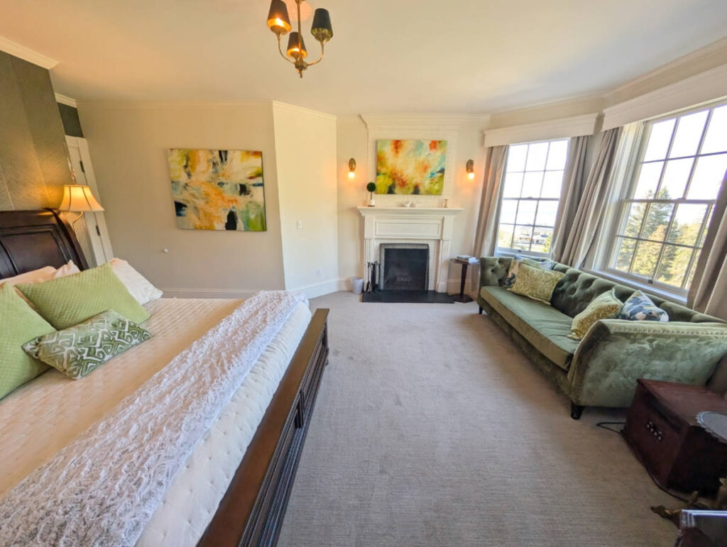 I watch a lot of movies and television shows set in the late 1800s and turn of the century, so arriving at the Blair Hill Inn and walking up the staircase to our beautiful room felt very much like I had been traveling by train and coach until arriving at a mysterious wealthy aunt’s home in a remote part of Maine. The stained glass and art nouveau fixtures, and then the plush velvet couch in our room, the fireplaces and the sitting areas, it all very much harkens back to the posh robber baron times. Well done.
